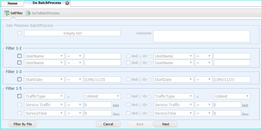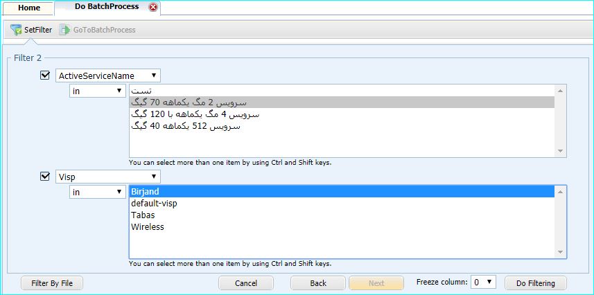با کلیک دکمه Next به صفحه بعد خواهید رفت که در آن می توانید یوزرهایی که یک سرویس خاص دارند و یا در یک Visp خاصی هستند را فیلتر نمایید.