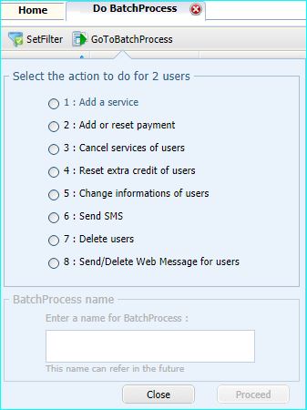 در حالت عادی می توان برای یک یوزر به تنهایی سرویس تعریف کرد، پیام فرستاد و یا یوزر مورد نظر را Delete کرد ولی شاید زمانی نیاز باشد که شما بعضی اعمال را برای گروهی از یوزرها انجام دهید و امکان اینکه برای تک تک یوزر ها جدا این کار انجام شود هم مشکل و هم زمانبر می باشد. از همین روBatchProcessکمک می کند تا بتوانید بصورت متمرکز و یکجا تمام عملیاتی که نیاز می باشد را برای گروهی ازکاربران اعمال نمایید.
