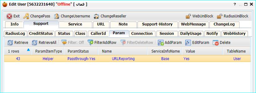 مثال 4: می خواهیم برای کاربران یک ریسلر خاص گزارش سایت های بازدید شده را ثبت نماییم. در این صورت در قسمت Param از آن ریسلر مقدار پارامتر URLReporting را برابر Yes قرار می دهیم.